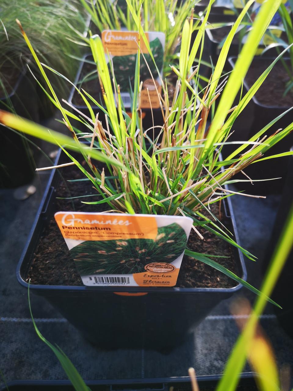 Pennisetum en pot de 3L à planter au jardin. touffe de tiges à petit épis. Vivace repousse chaque année.