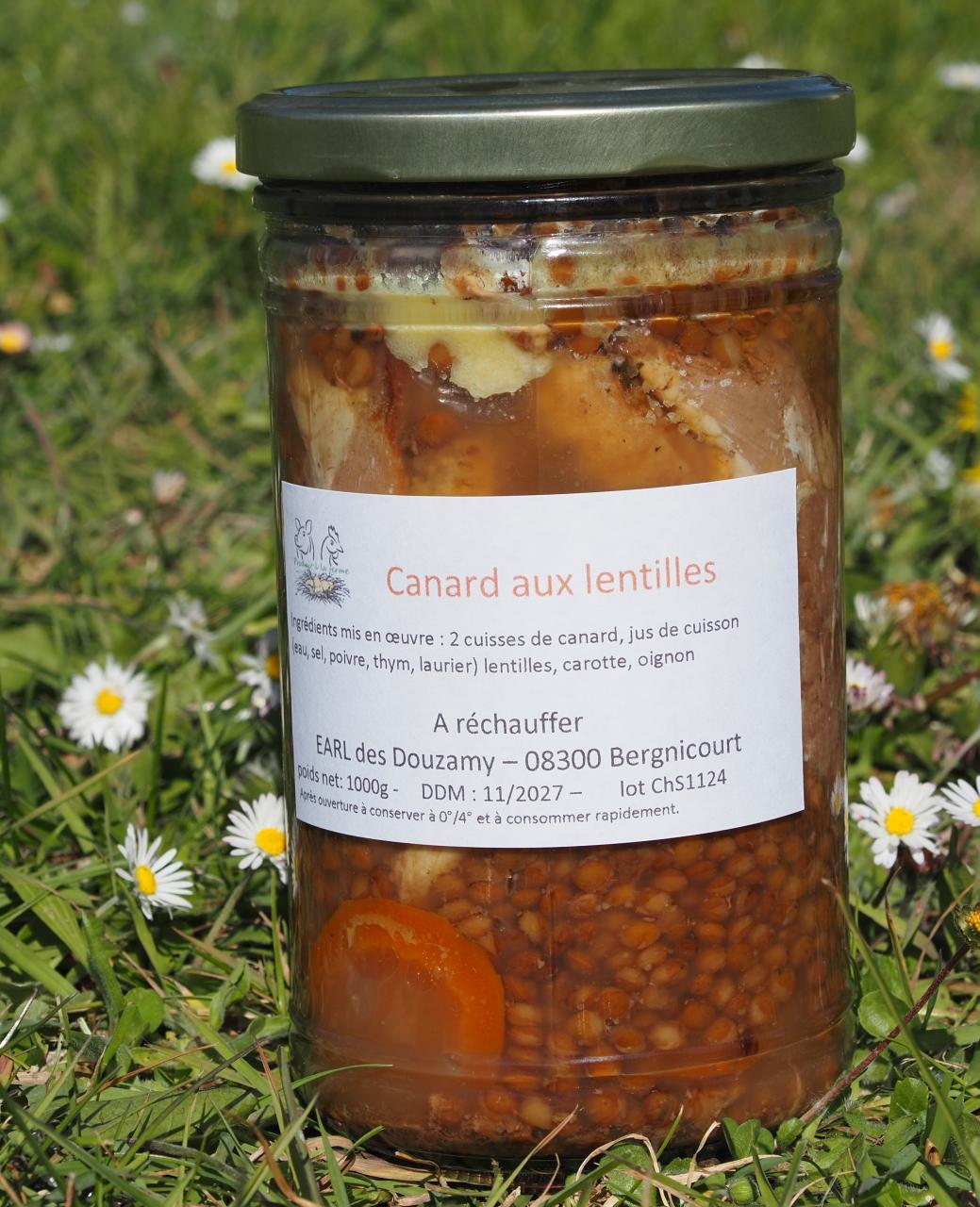 Bocal de 1kg : 2 cuisses de canard aux lentilles.