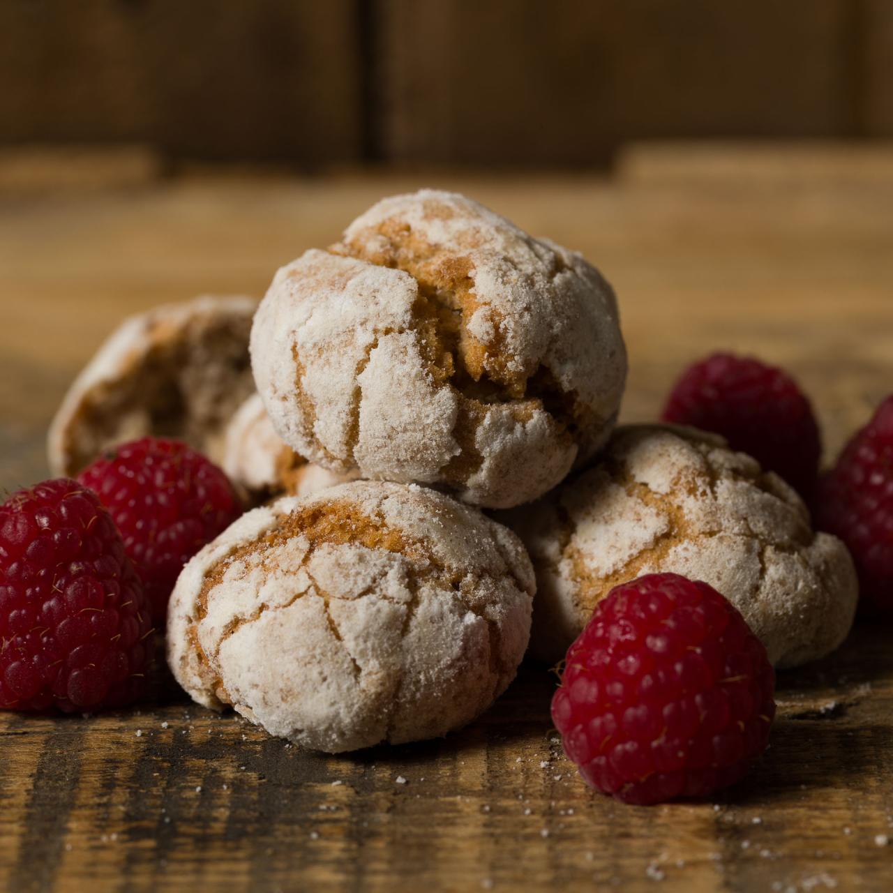 Un biscuit léger, craquelé à la texture craquante et fondante à la fois et légèrement aromatisé à la framboise.