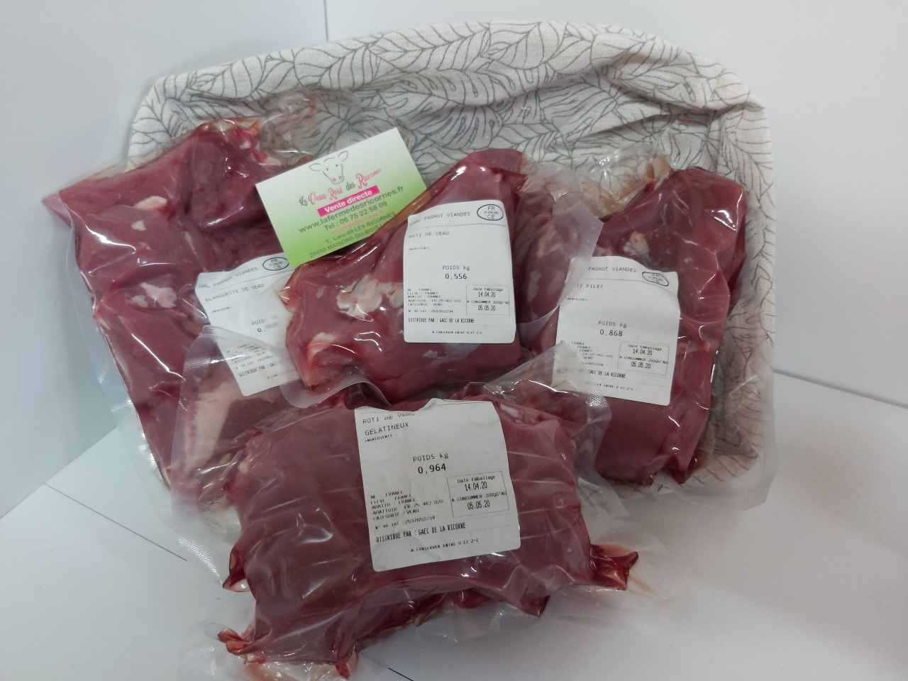 La Ferme des Ricornes vous propose une caissette de pièces de viande de veau rosé.