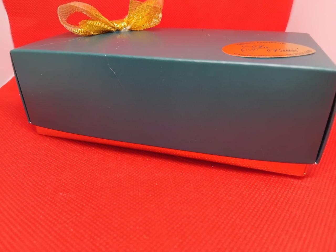 Ballotin composé de bonbons chocolat pur beurre de cacao, avec des bonbons praliné, praliné croustillant, praliné quatre épices mais aussi de ganache café, thé, lait, chocolat 70%, cannelle. Il est composé également de chocolat caramel cacahuètes, passion caramel, de mendiants et d'orangettes.